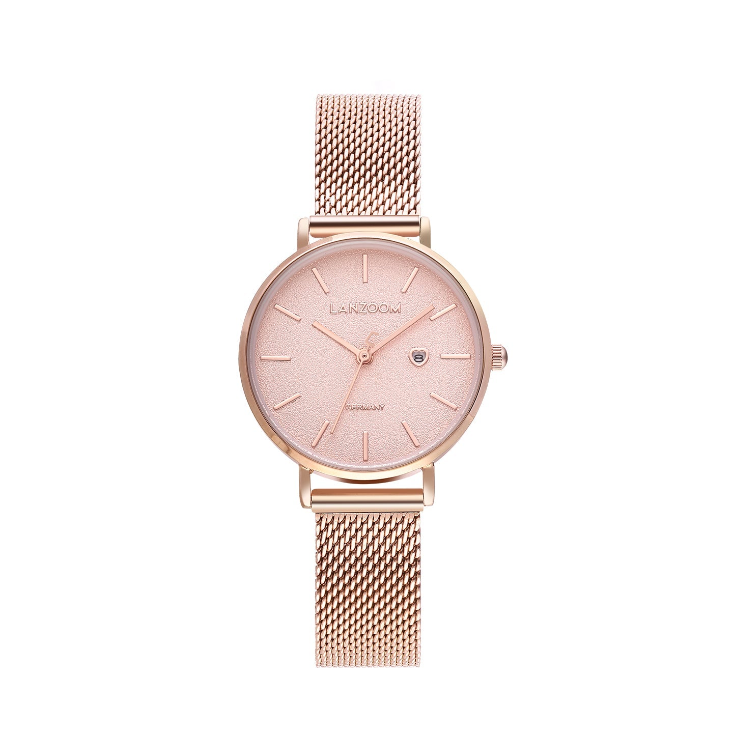 A sweet heart-shaped cutout window displays the date, adding a unique charm to the classic round design. The smooth lines and lightweight feel allow this watch to effortlessly showcase elegance, making it perfect for everyday wear.