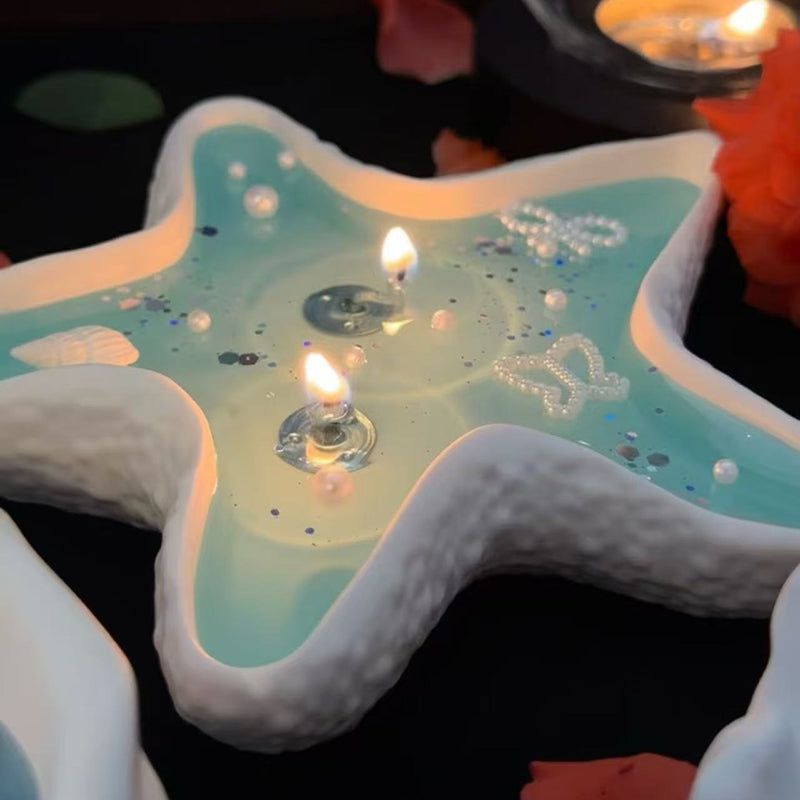 Handmade Ocean Breeze Starfish & Shell Jelly Candle Set